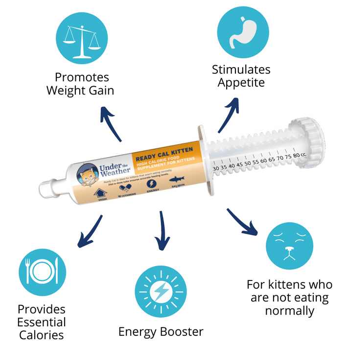- Vet formulated for kittens of all ages, Ready Cal Kitten gel supplement comes in a dial-a-dose tube for convenient and accurate dosing.